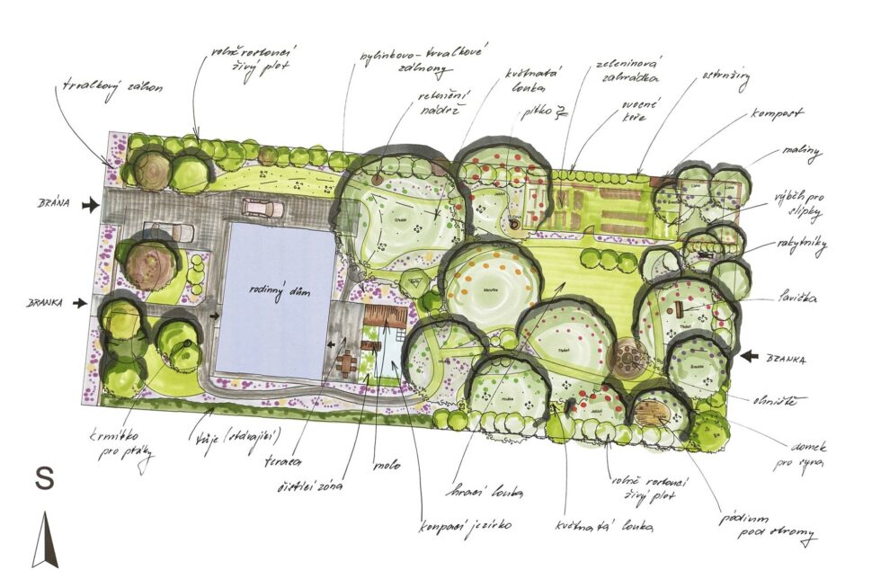 Zahrady běžně řešíme jako tělocvičnu, místo bez příček. Sázíme a stavíme zahradní prvky podél plotu a jen občas se odvážíme do prostoru. Tímhle stylem zahradtvoření ale nikdy nevytvoříte útulnou zahradu, která láká k procházce. Je potřeba jít do prostoru. Vemte si mapu své zahrady a tužkou si do plánku zahrady zakreslete jednotlivé pokojíčky jako jsou: vstupní část, letní obývák, dětské hry, zeleninová zahrádka, sad, lesní divočinka, dřevárna, koupání, meditace i cvičení. Že k vám tolik pokojíčků nevejde? Nebojte, vejde. Chce to jen trochu zapřemýšlet a otevřít se novým možnostem.